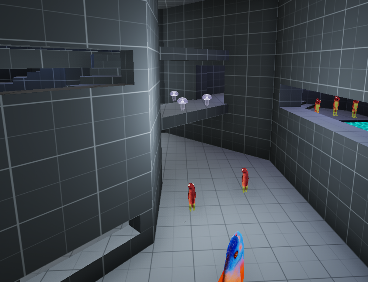The game will have you Fish and tear through many levels in a quake-like adventure to save the world, Gordan Freeman style. Along your way you'll find different rods & weapons to aid you in your journey to eradicate the evil fishy overlords of this corrupted world!